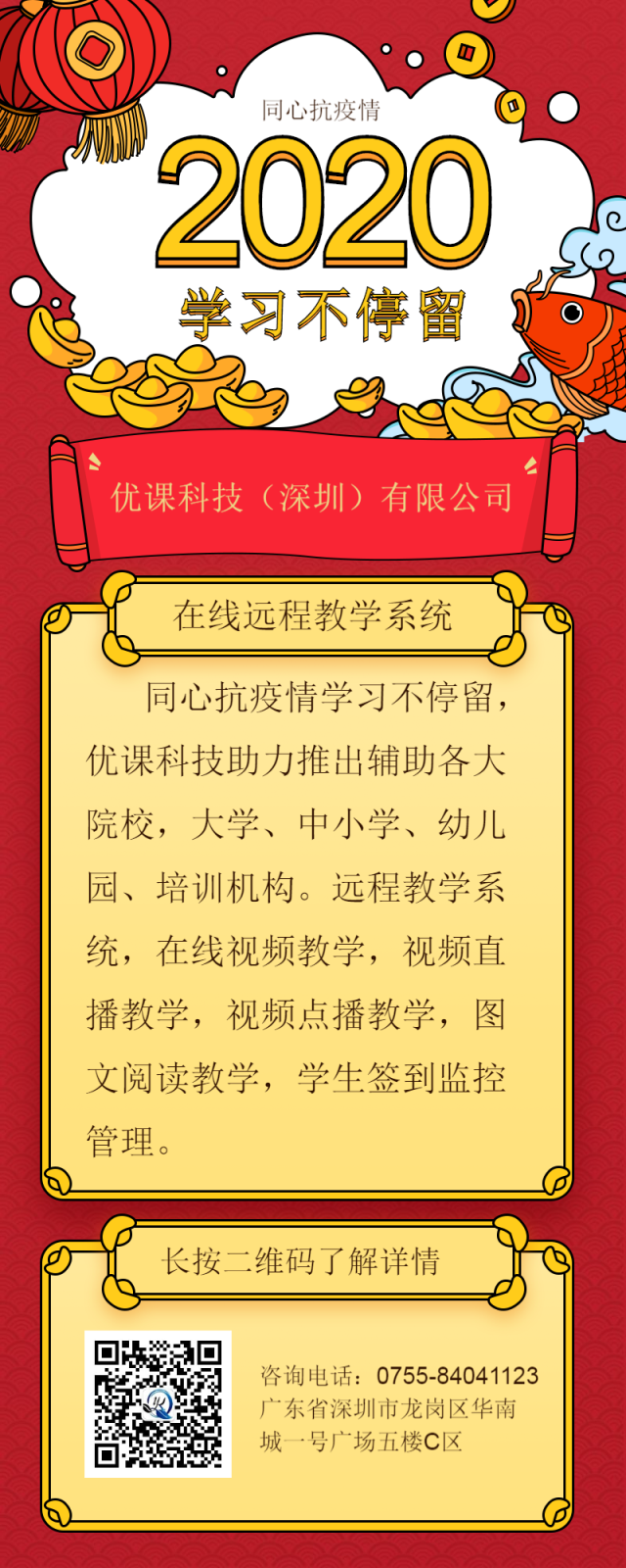 同心抗疫情學(xué)習不停留,優(yōu)課科技助力推出輔助各大院校,大學(xué)、中小學(xué)、幼兒園、培訓(xùn)機構(gòu)。遠程教學(xué)系統(tǒng),在線視頻教學(xué),…